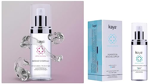 Kaya Clinic Pigmentation Reducing Complex Fast absorbing Night cream for tanning & pigmentation marks resistant spots 30 mlA light-textured cream suitable for all skin types that helps reduce dark spots age spots tanning pigmentation marks and dark circles. It visibly helps reduce dark spots and pigmentation in 2 weeks. Azelaic and Phytic acid helps stop melanin transfer to the skin surface making it brighter and even-toned.Kaya Clinic Antox Vit-C Formula Vitamin C Face Serum Anti-oxidant Serum for Pigmentation Fine Lines Wrinkles 30mlA potent antioxidant formula reduces skin damage caused by free radicals to leave your skin looking fresh and youthful. It controls the adverse effects of UV damage such as wrinkling and premature ageing. High concentration of Vitamin C fights free radical damage to keep your skin glowing.