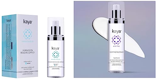 Kaya Clinic Pigmentation Reducing Complex, Night cream for tanning, dark spots, scars, All skin types 30 ml and Kaya Clinic Acne Free Purifying Nourisher, Gentle/light/non-greasy Moisturizer, 50 ml
