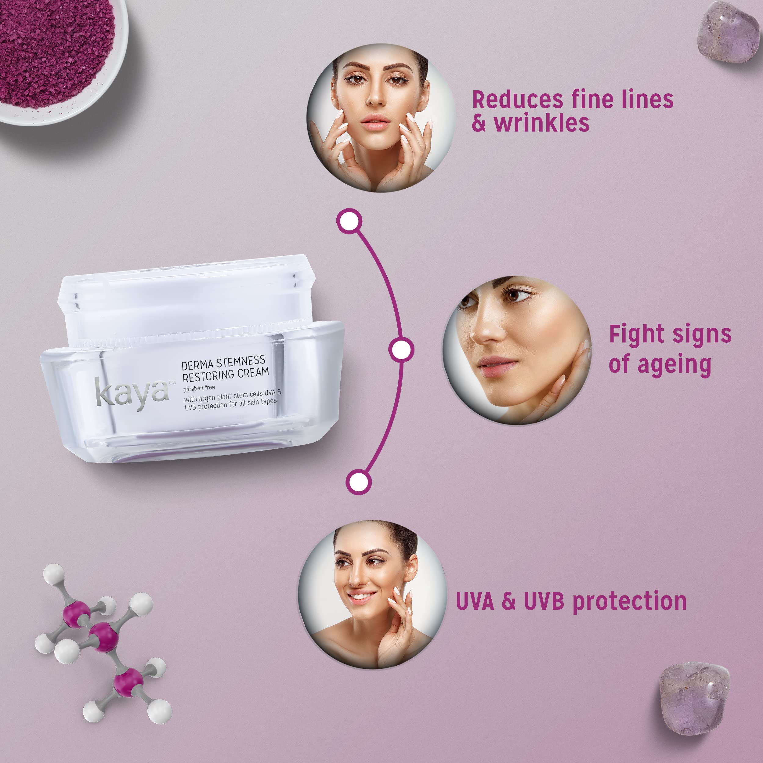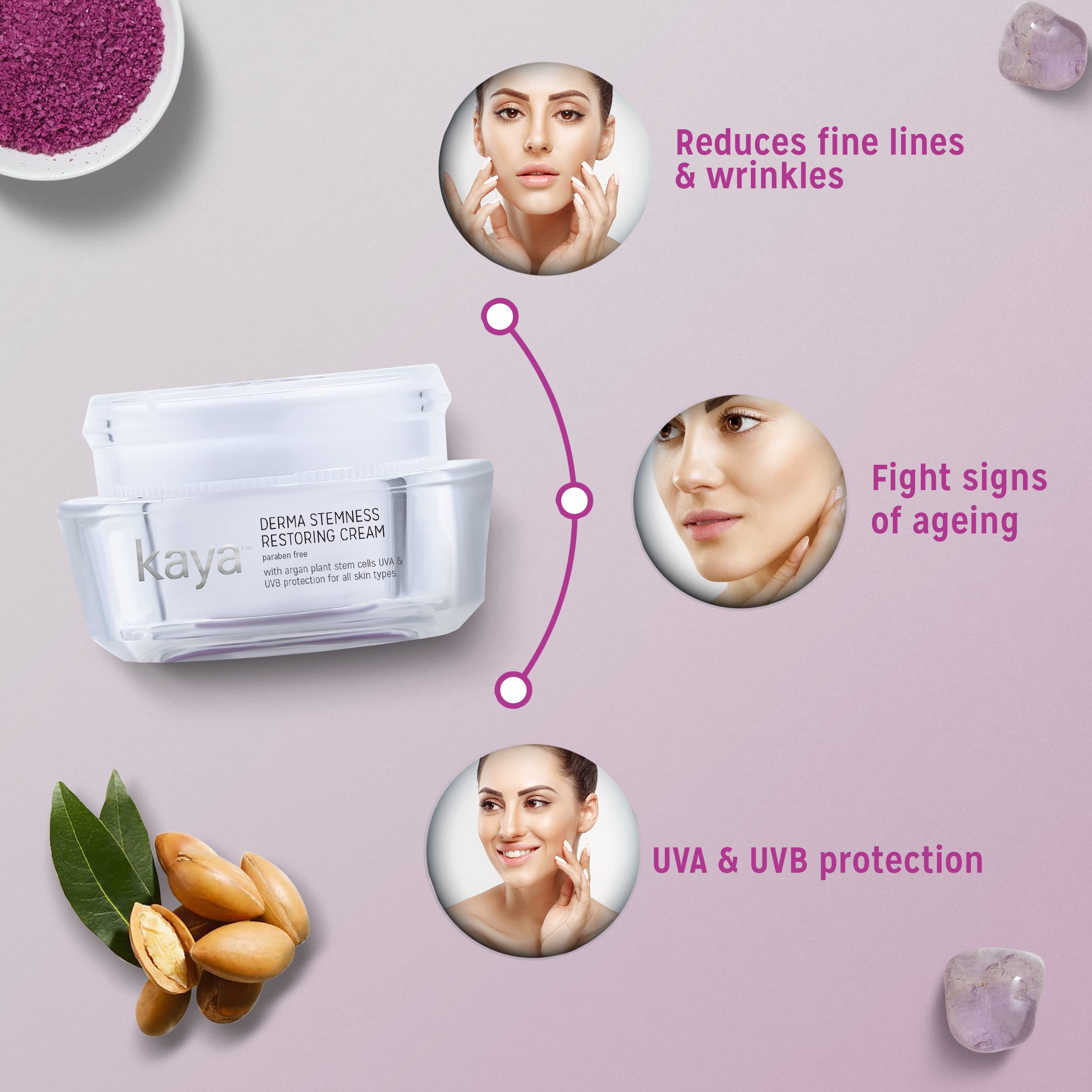 Derma Stemness Restoring Cream is inspired by breakthrough research in plant stem cells and the understanding of their unique ability to regenerate and renew. Using the extract of stem cells from Argan tree one of the oldest and rarest plants found in the world and selected for its exceptional ability to protect and reinforce the regenerative capacity of skin cells.