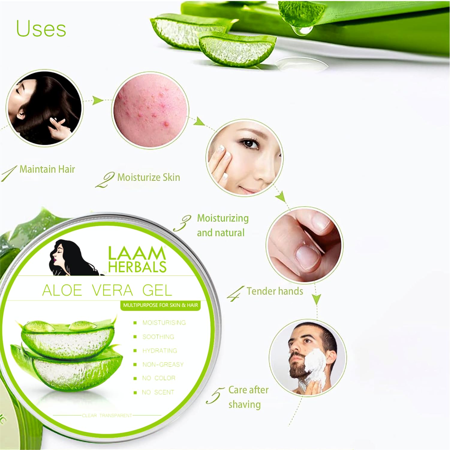 Laam Herbals Aloe Vera Gel 97% | Clear Transparent No Color & No Scent | Non-Greasy Soothing Hydrating & Moisturising | Multi-Purpose for Skin & Hair-700g