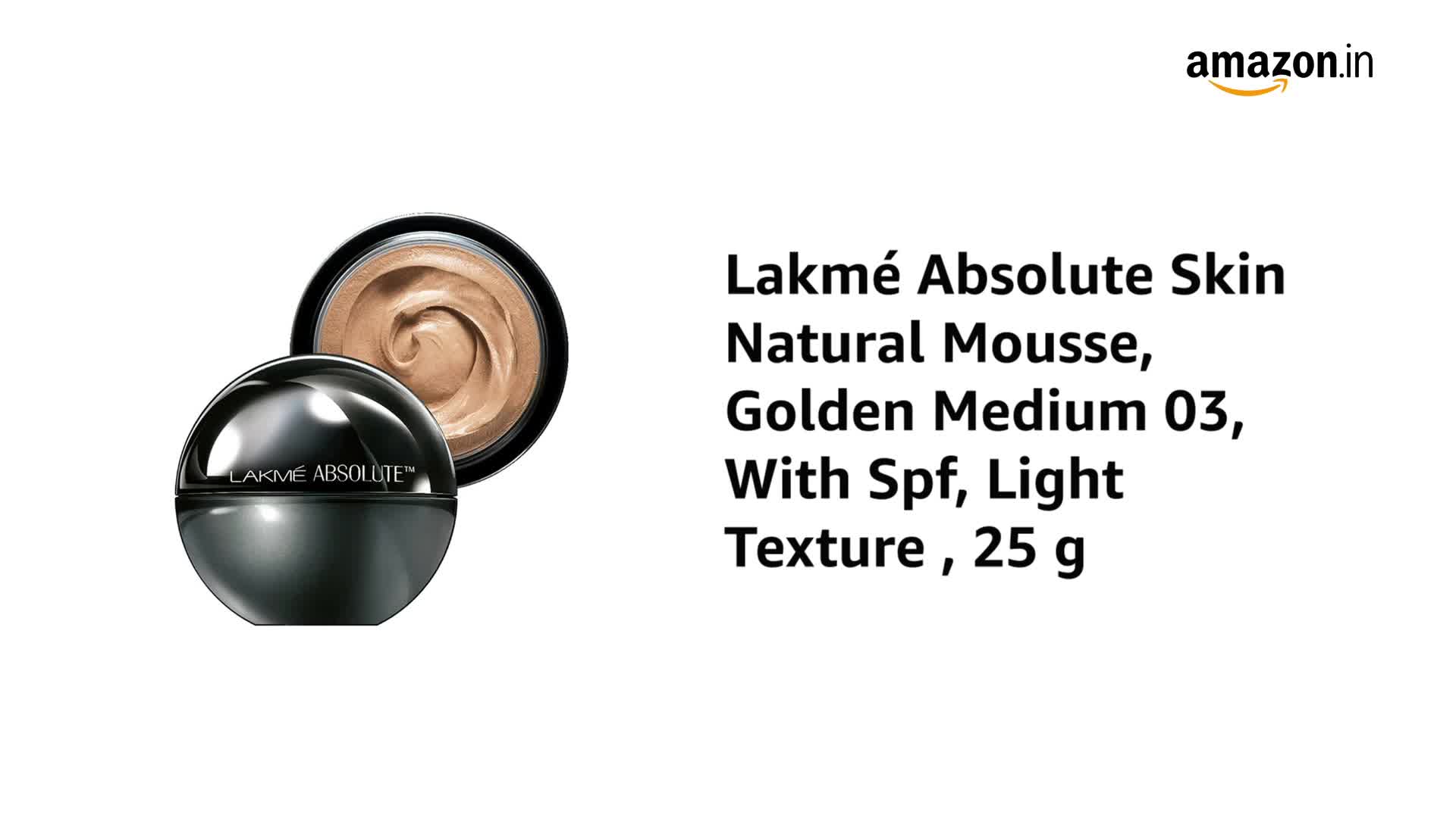 Lakme Absolute Skin Natural Mousse Golden Light 04, SPF8 Natural Finish Matte Cream Foundation -Long Lasting Weightless Full Coverage Face Makeup, 25g