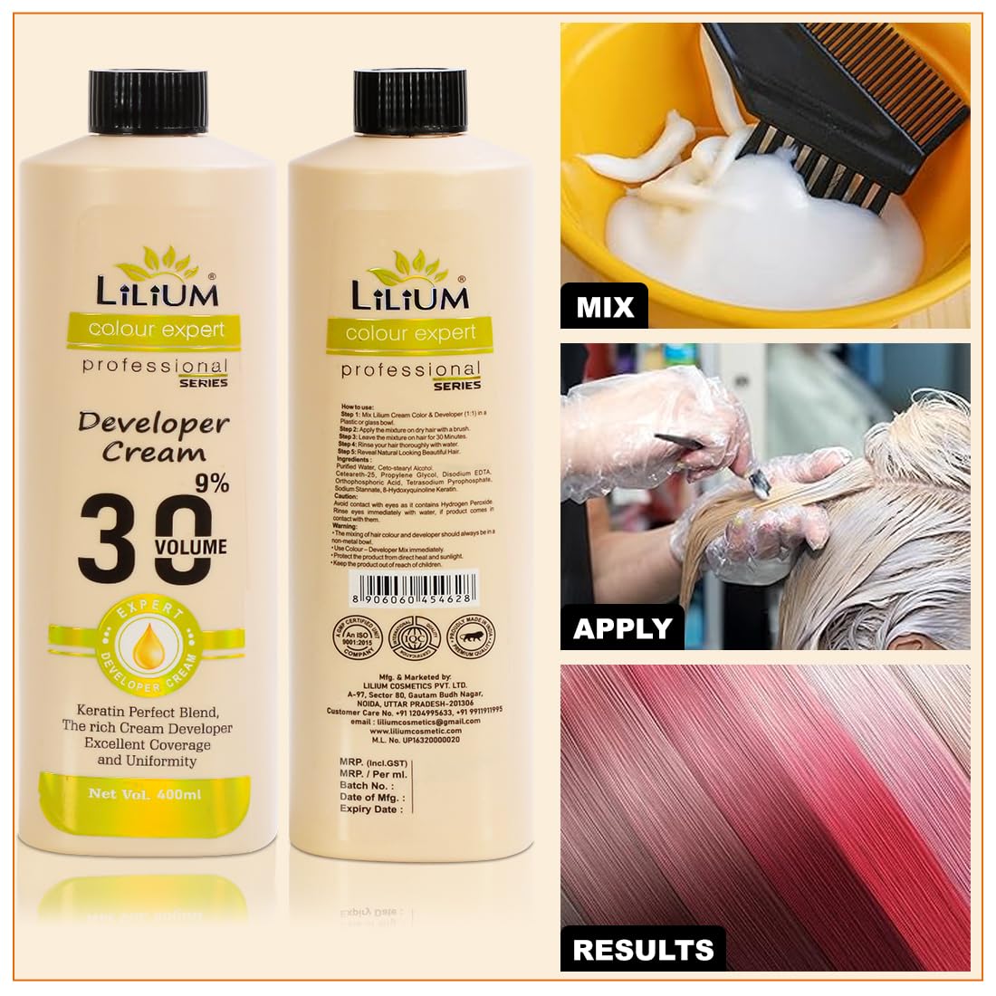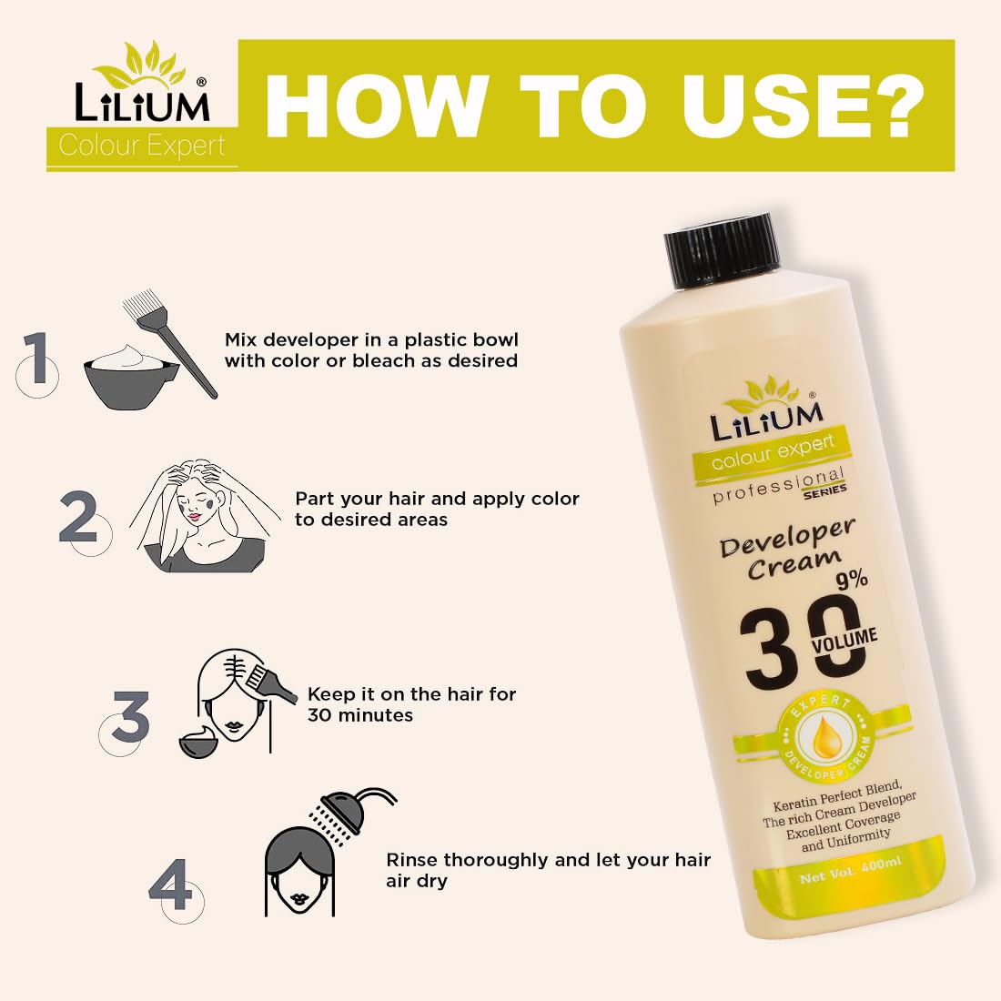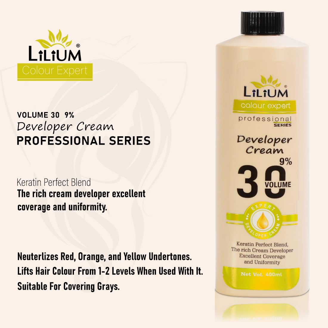 Lilium Developer Cream 9% 30 Volume 400ml Keratin Perfect Blend The Rich Cream Developer Excellent Coverage & Uniformity
