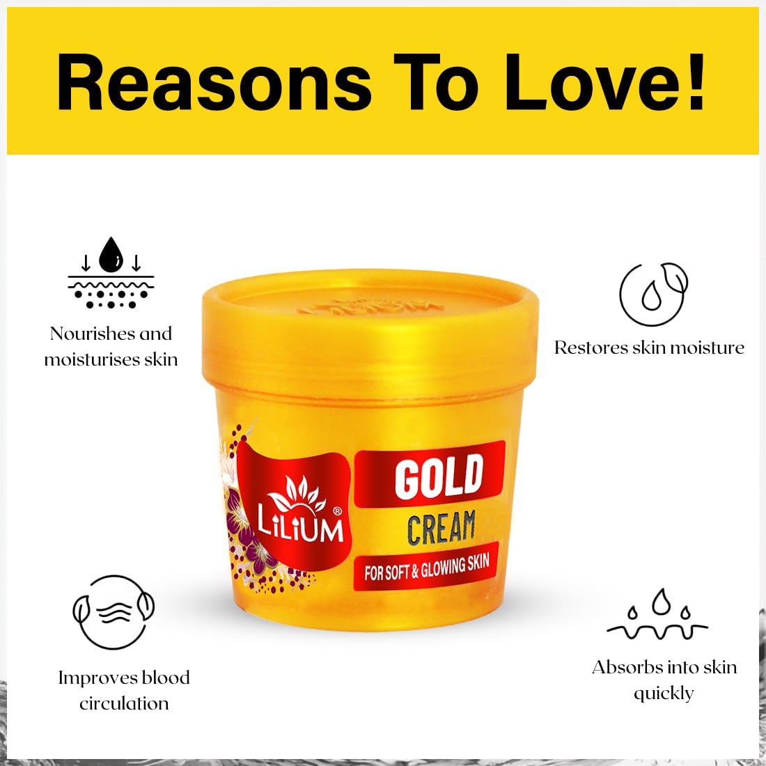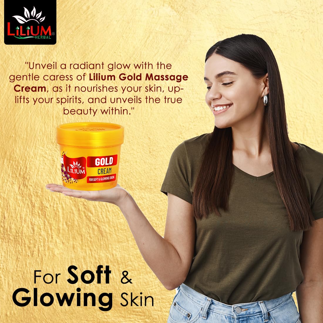 Good Choice India Provides you a Brand New Product. Lilium Gold Massage Cream Perfect blend of Gold suitable for all skin types. Gold Cream contains natural antioxidants that help to exfoliate the skin in the most gentle and natural way. This massage cream acts as a strong skin-firming and anti-ageing product. It helps to remove dark spots and blemishes and even out the skin tone. This product gives soothing and relaxing to your tired and dull skin and its natural moisturizing and cleansing properties helps to rejuvenate your skin