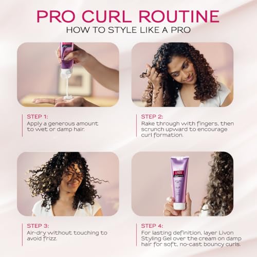 Livon Style Pro Curl Cream is a one-stop solution for beautiful & healthy curls. Itis a leave in cream designed specially for curly coily and wavy hair that provides intense hydration & nourishment to your curls leaving them smooth and moisturized. The lightweight non-sticky and non-greasy formula allows you to style your curls effortlessly without weighing them down. Perfect for enhancing curl definition leaving your curls soft and bouncy. This curl defining cream is infused with a rich nourishing duo â Shea Butter & Avocado that intensively hydrates & nourishes curls. Rich in vitamins A and E Shea Butter has good water-binding properties that provides intense hydration. It retains natural moisture lost in hair and protects your hair from damage** caused by chemical treatments heat styling and environmental aggressors that make hair rough & dry. Avocado is known to deeply nourish the curls lock in moisture and prevent moisture loss making them soft smooth glossy and healthy. The proteins folic acid magnesium and minerals present in Avocado oil are known to seal hair cuticles and strengthen hair. Also known to increase hairâs resistance against breakage and reduces split ends. *Basis Technical Study vs Untreated Hair 2023 **Damage refers to surface damage
