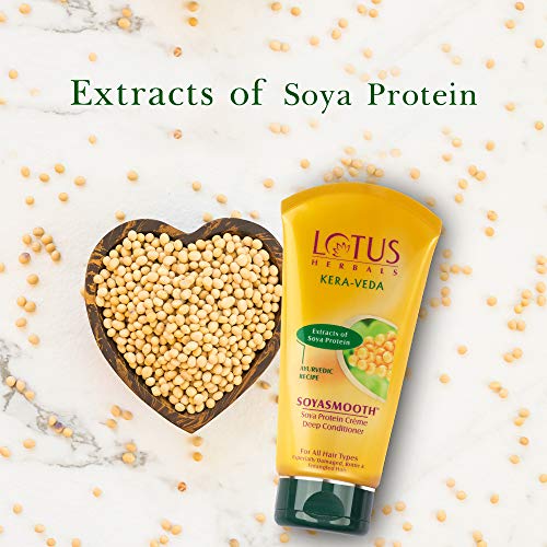 Lotus Herbals Kera-Veda Soyasmooth Soya Protein Cream Deep Conditioner | For All Hair Types | 150g