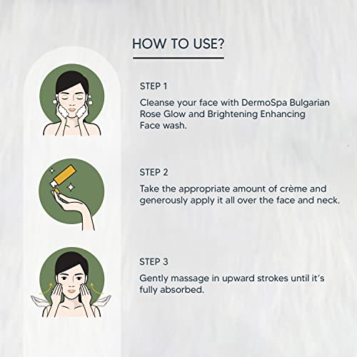 Dermo spa Bulgarian rose skin radiance SPF20 crème. A delicate formulation based on Bulgarian rose extracts which effectively moisturiser all skin types against environmental drying effects and also soothes the skin due to antiseptic and astringent properties. Thus imparting glow and brightening skin.
