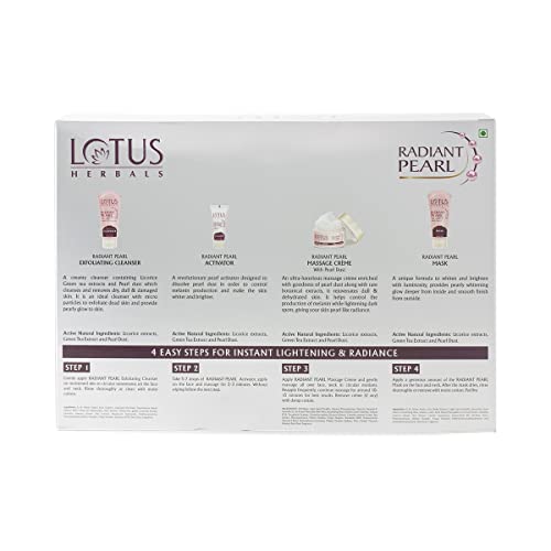 Lotus Radiant Pearl Facial Kit for Lightening & Brightening skin with Pearl dust & Green Tea 4 easy steps 170g(Multiple Use)
