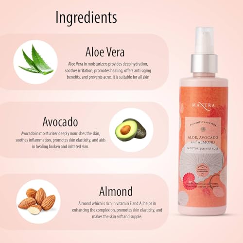 • Aloe avocado and almond moisturizer creates a nourishing and hydrating formula that deeply moisturizes the skin protects it from environmental damage soothes irritation and promotes overall skin health and vitality.