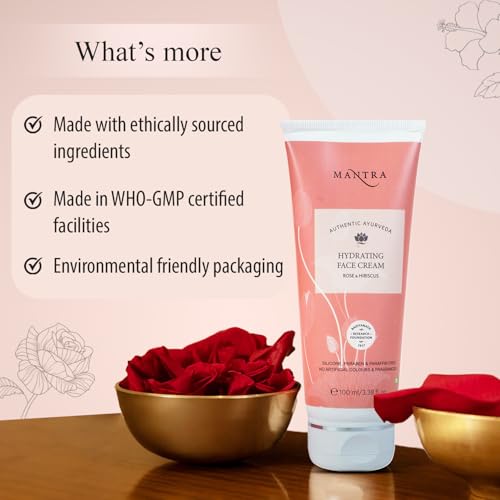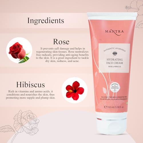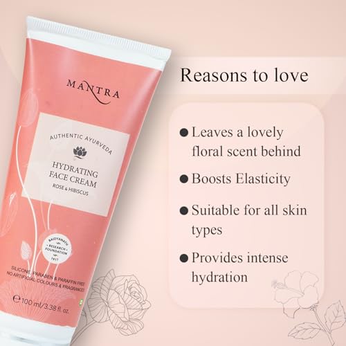 Mantra Hydrating Rose & Hibiscus Face Cream is infused with soothing property of rose oil that gently moisturizes and protects skin from environmental damages. It has hibiscus extracts that rejuvenates the dead skin cells fights acne and brightens the skin. Aloe Vera extracts prevent acne outbreaks and relaxes irritated skin. Calendula Oil protects skin from UV damages and fights signs of ageing.