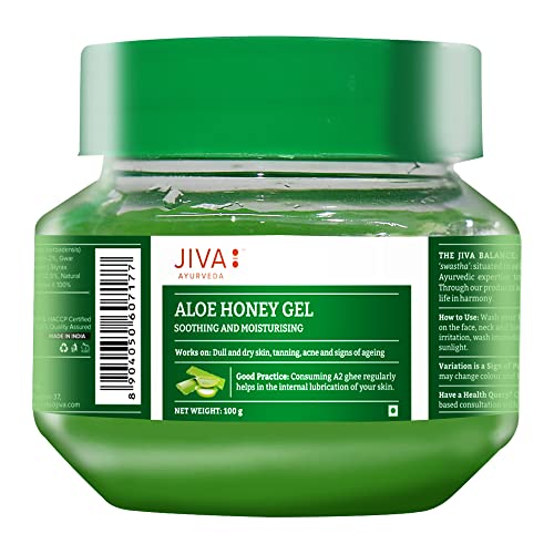Jiva Aloe Honey Gel 100gm | 100% Ayurvedic Formulation | Moisturizes & Soothes Dull Skin | Reduces Acne, Blemishes, Rashes, Sunburn & Signs Of Ageing | Ideal For All Skin Types (Pack Of 2)