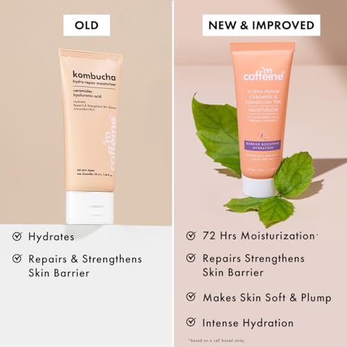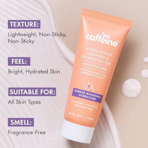 mCaffeine Hydra Repair Ceramide & Kombucha Tea Moisturizer | Repairs & Strengthens Skin Barrier | 72Hrs Moisturization | Lightweight & Non-Sticky Moisturizer For All Skin Types | For Men & Women- 50ml