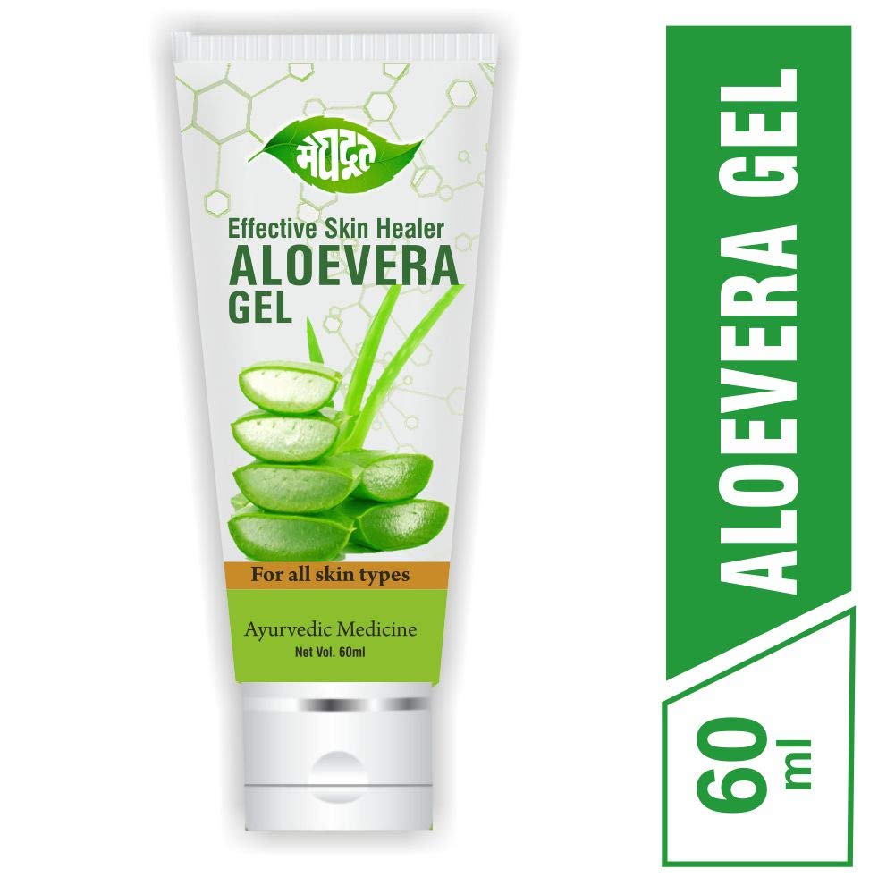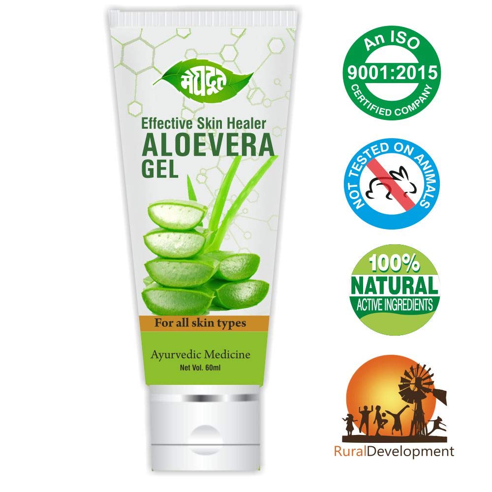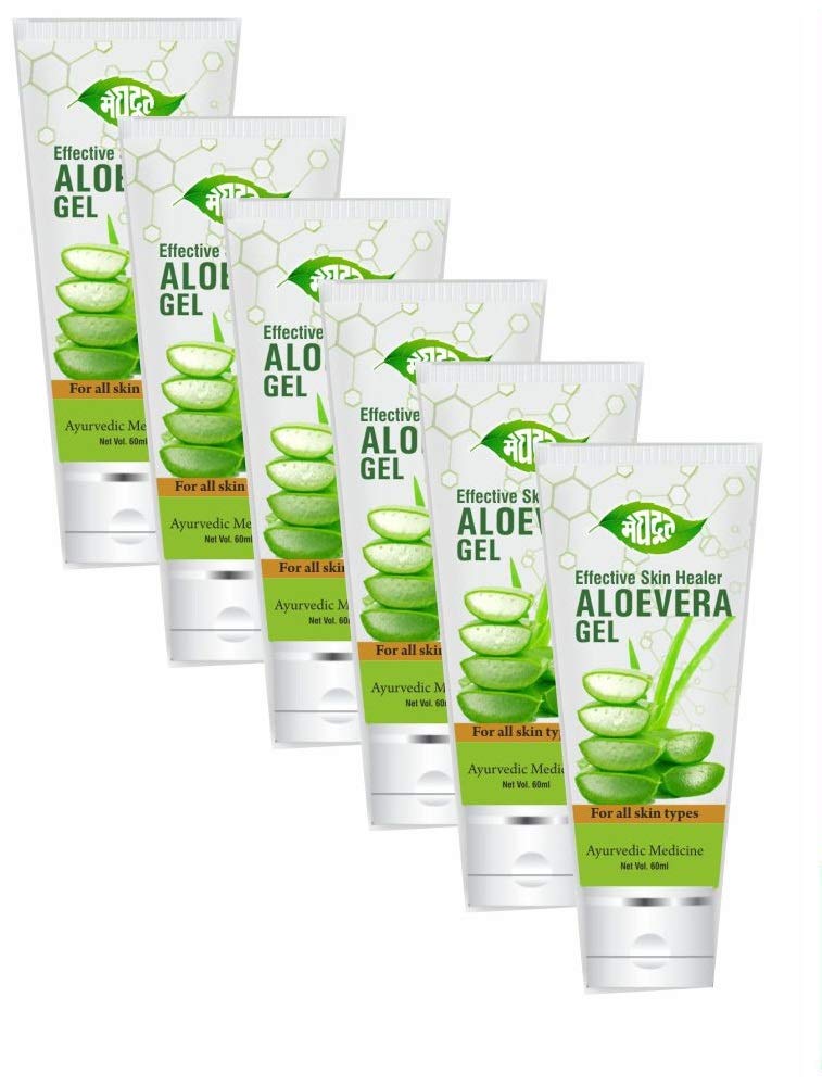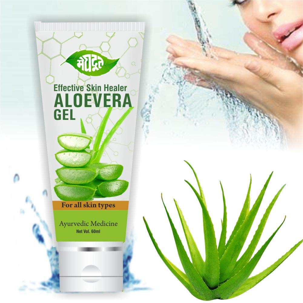 Meghdoot Aloe Vera Gel 100% Pure Natural Skin Healer for Moisturizing Hydration and Soothing Sunburn Acne Scars and Skin Irritation 60ml (Pack of 6)