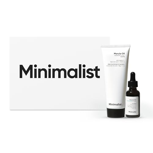 Minimalist Niacinamide 5% Face Serum & Marula Oil 5% Moisturizer Combo | Hydrating & Repairing Skincare Gift Set for Clear & Glowing Skin | Premium Gift Kit for Women & Men | For Dry Skin