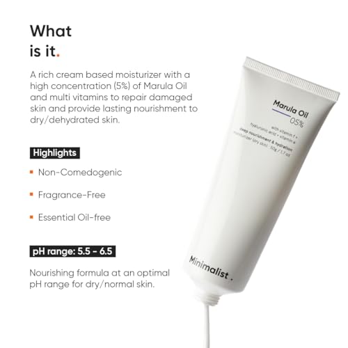 Minimalist Marula Oil 5% Face Moisturizer For Dry Skin With Hyaluronic Acid For Deep Nourishment & Hydration, For Men & Women