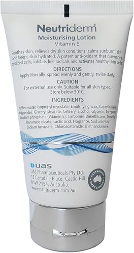 • Neutriderm is a unique Vitamin E Phosphate moisturiser has excellent soothing and replenishing properties. It has ten times more absorption than Vitamin E Acetate Cream.