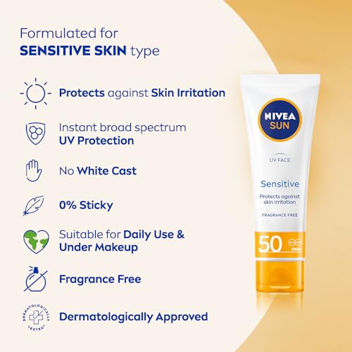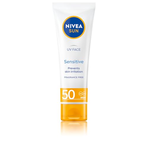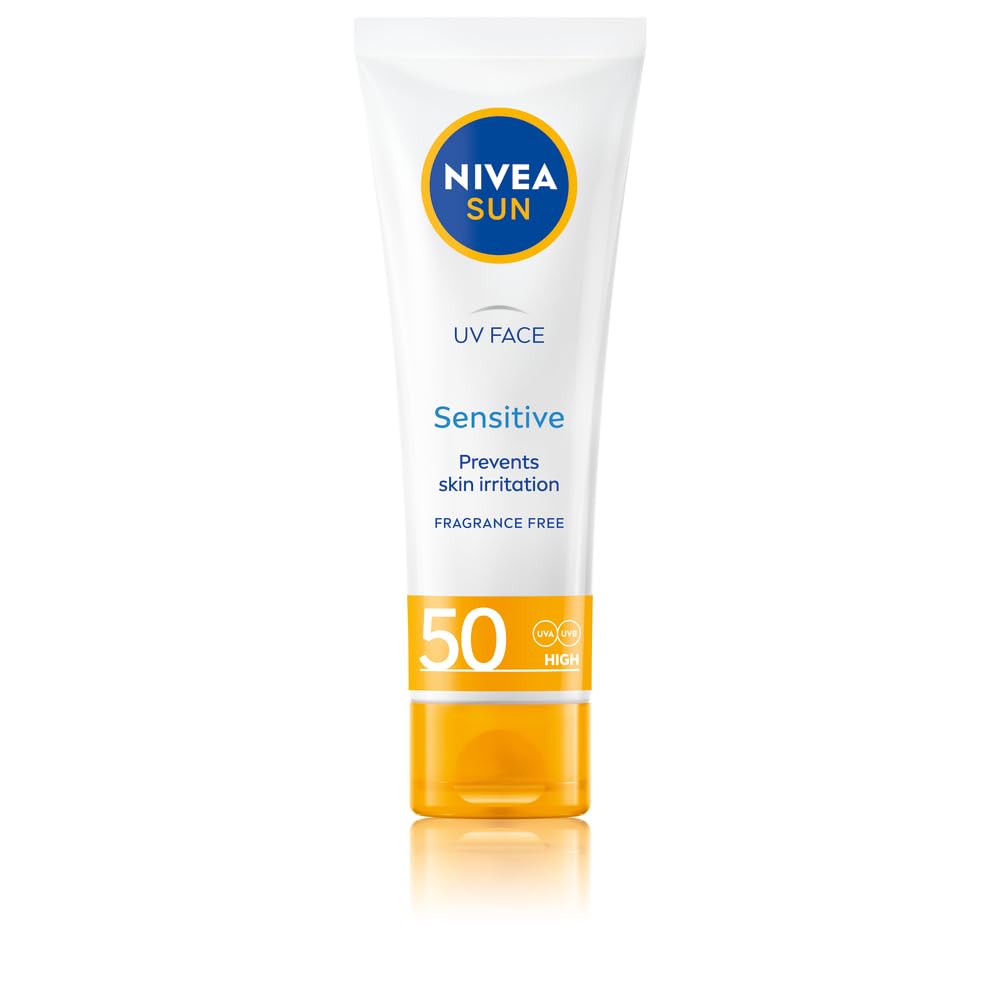NIVEA Sun UV Face Sensitive SPF 50 Cream (50ml), Sunscreen Protects Against UVA/UVB Rays and Premature Skin Ageing, Sun Cream for Sensitive Facial Skin