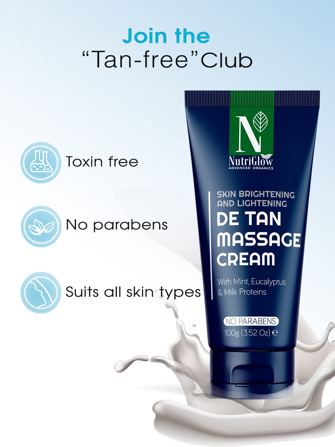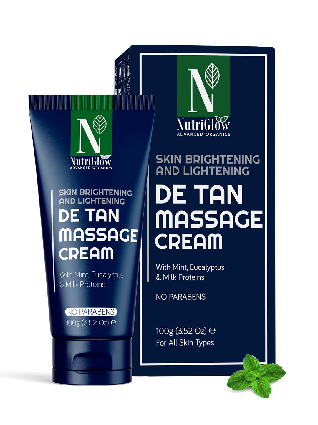 Nutriglow Advanced Organics De-tan Massage Cream with Mint Milk Proteins for Tan-Free Skin & Brightened Complexion 100g
