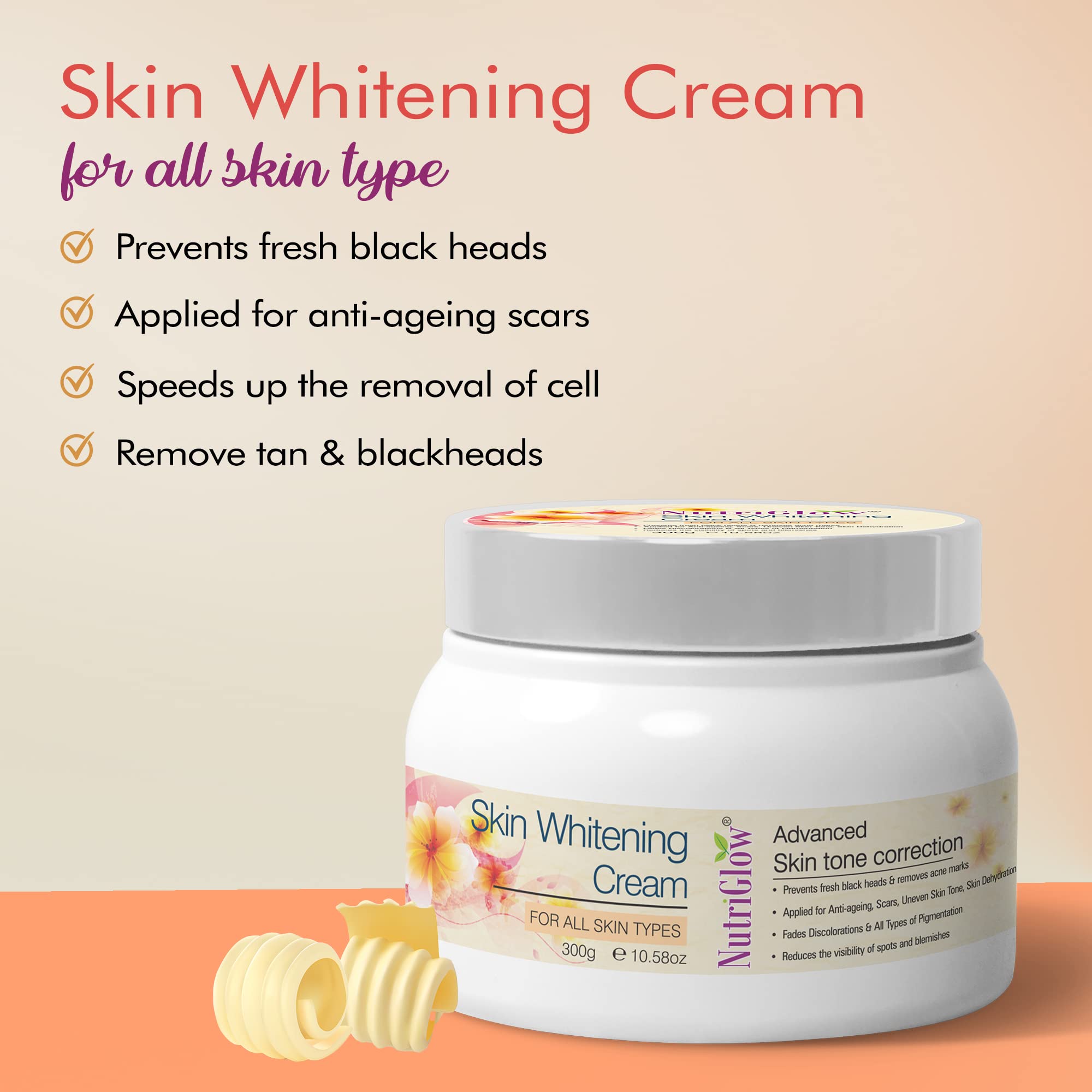 NUTRIGLOW cosmetics provides you skin whitening pack for all skin types advanced skin tone correction refresh and ifies skin heacne pimple excess pigmentation and blemishes prevents fresh black heads and removes acne marks fades discoloration & all types of pigmentation a unique formulation to help clarify skin prevents the appearance of discoloration leave skin fresh and even toned this skin whitening face pack has been carefully designed and scientifically developed using precious ingredients to help mitigate and remove pigmentation blemishes clarify skin perfect blend of essential aromatherapy oils this facial pack clears impurities of all skin surface as well as unclogs pores to provide in blemishes as well as tones the skin; leaving you with a clean smooth complexion how to use: purify your skin with this pack that removes unhealthy cells and tan apply a thick layer and let the pack rest till semi dry clean it thoroughly with normal water. Later spray some nutri glow toner for best results you will see a new glow key ingredients: light kaolin zinc oxide liquorice extract turmeric oil saffron extract vitamin e acetate neem extract aloe vera extract for all age groups the contents are by not by volume of the jar not tested on animallergy tested manufactured under highly controlled environment for eermal use only store in cool and dry places keep out of reach of in case of contact with eyes Wash immediately.