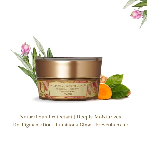Pure turmeric is combined with Amla Triphala Cow ghee Sandalwood Manjistha Plaksha and other herbs to deeply hydrate. Anti-inflammatory blood purifying and anti-oxidation benefits to leave a luminous glow reducing blemishes undoing the harmful effects of environmental pollutants. Yashad Bhasma and Kulanjin provide natural sun protection.
