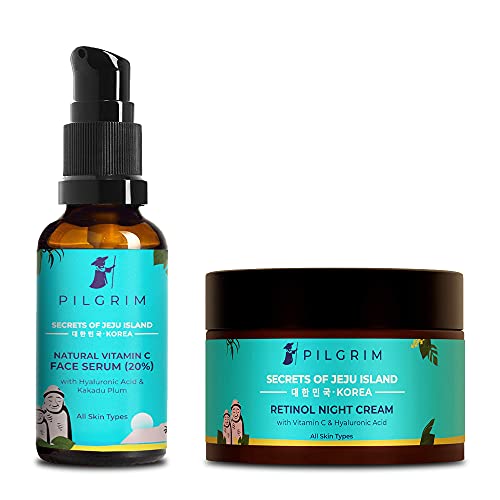 Pilgrim Korean Beauty Night Repair Combo Pack | Natural VIt C 20% Serum 30ml + Retinol Night Cream 50g | Anti-ageing & Depigmentation | For Men & Women | All Skin Types