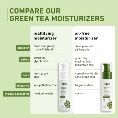 Plum Green Tea Oil-Free Face Moisturizer | With Niacinamide & Hyaluronic Acid | Fights Pimples & Hydrates | Fades Blemishes & Brightens Skin | Non-Sticky & Long-Lasting Moisturizer for Face | 50ml