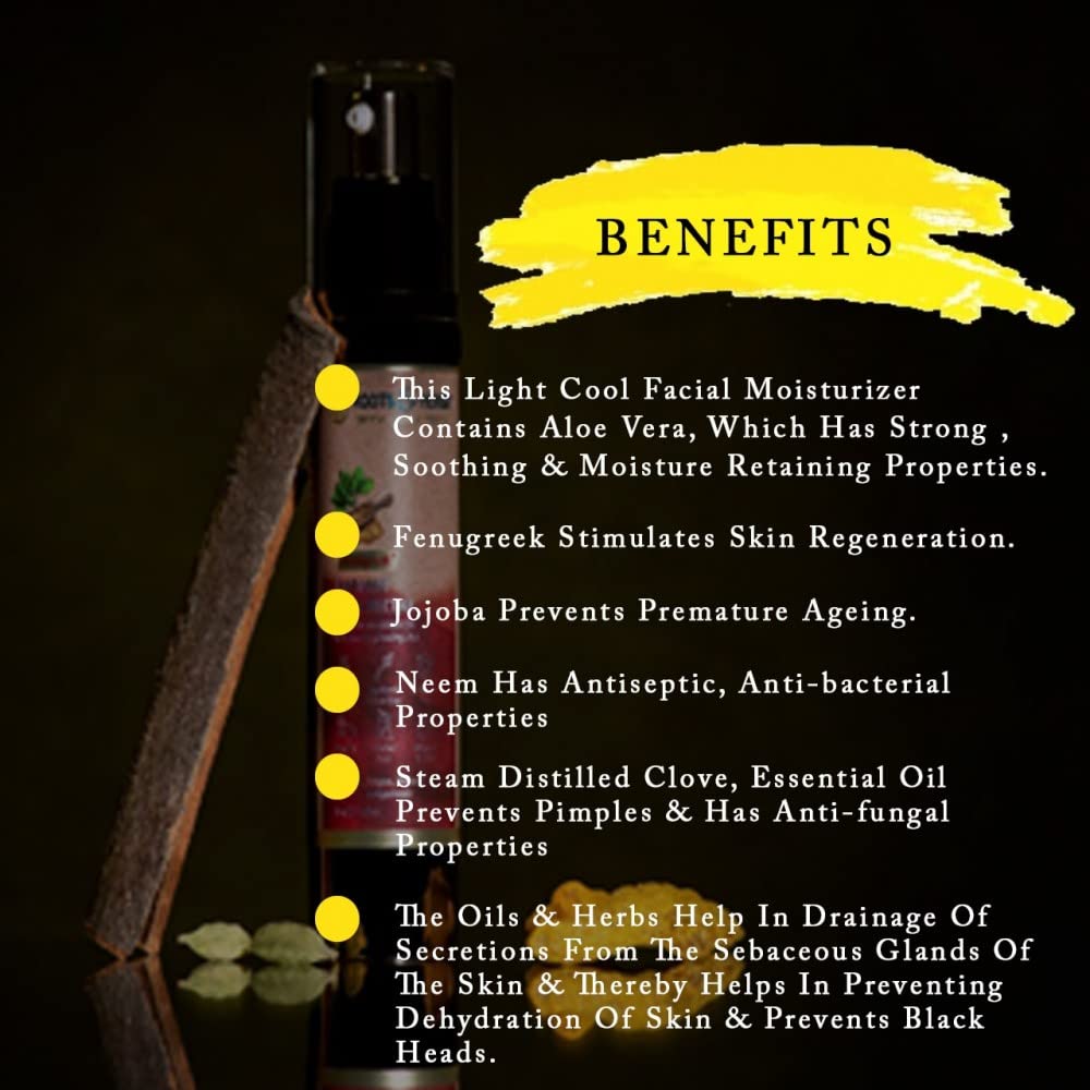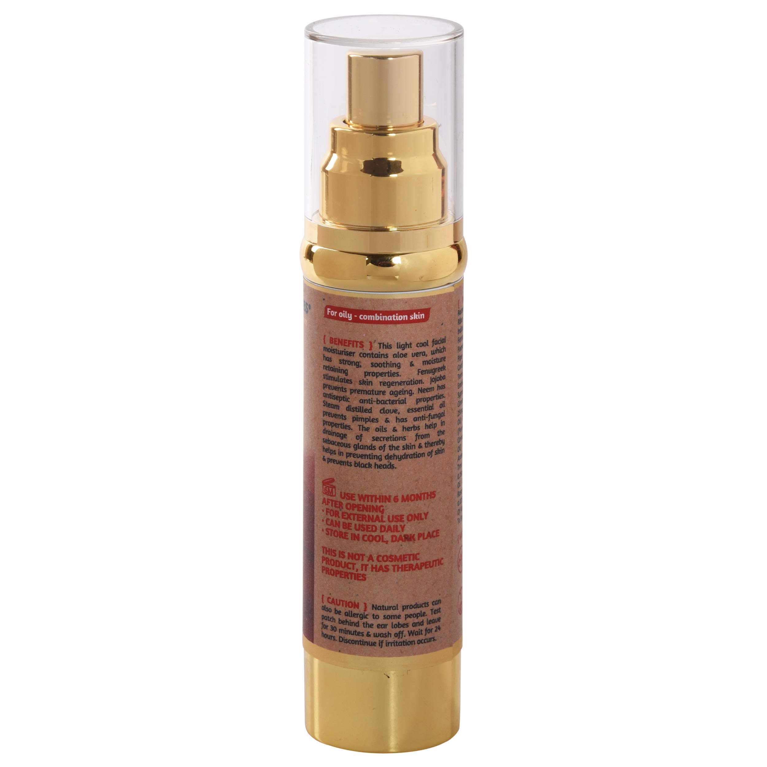 COMBINATION: This light cool facial moisturizer contains aloe vera which has strong soothing & moisture retaining properties and various other natural herbs for a glowing and better skin