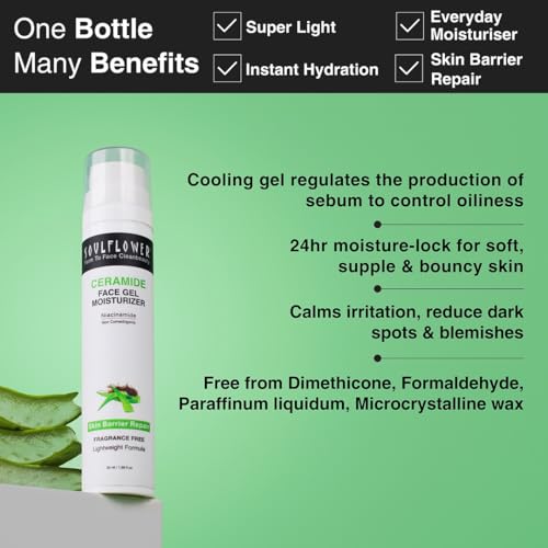 HomeHealth & PersonalSkin CareFace CareMoisturiser & CreamSoulflower Ceramide Moisturizer with Niacinamide & Aloe vera for Instant Hydration, Super Light, Skin Barrier Repair Cream for Dry, Normal & Senstive Skin, Dark spots & blemishes Men & Women | 50ml