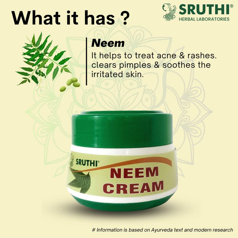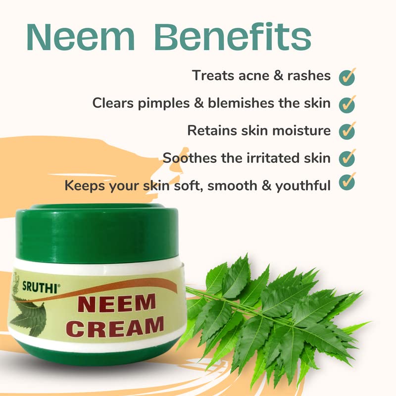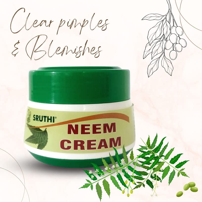 Sruthi Neem Cream known for anti-and anti-septic properties render clear skin free from pimples and blemishes.