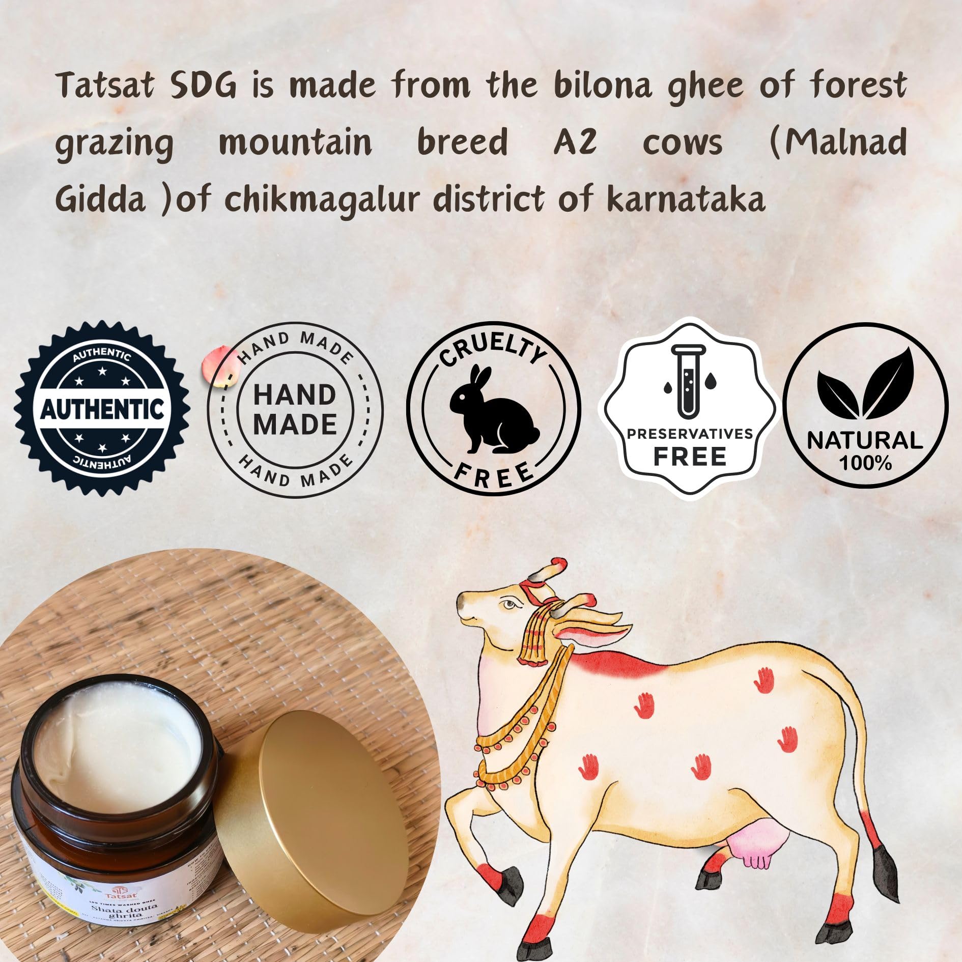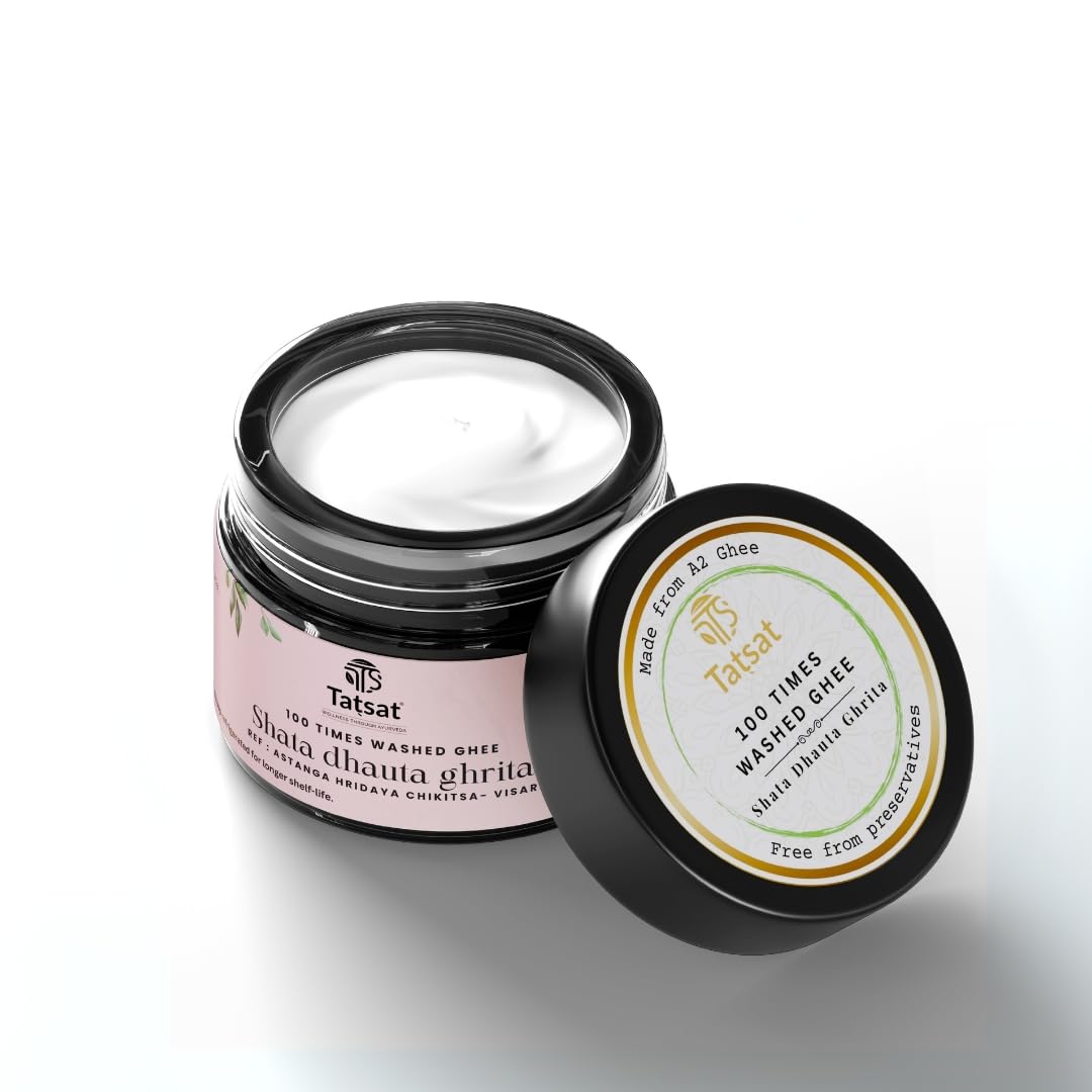 TATSAT - WELLNESS THROUGH AYURVEDA Shata Dhauta Ghrita 100 Times Washed Ghee Anti Aging Nourishing Night Cream Removes Stretch Marks | A2 Ghee Skin Moisturizing Cream 100Gm (100gms Unscented)
