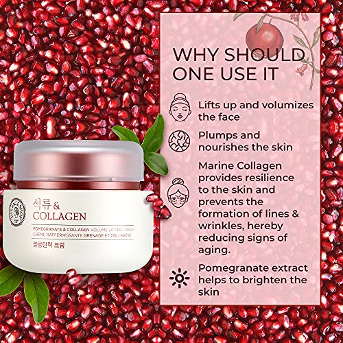 The Face Shop Pomegranate & Collagen Face Cream With 10% Marine Collagen & Pomegranate Extracts | Day & Night Cream to smooth wrinkles & give intense moisturization | Suitable For All Skin Types 100Ml
