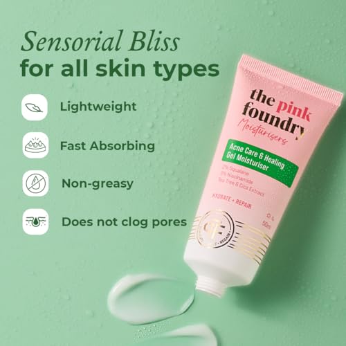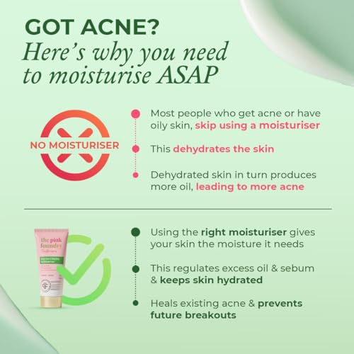 The Pink Foundry Acne Moisturiser I Treats & Prevents Breakout, Soothes Redness & Irritation I Gel Moisturiser for Normal, Sensitive, Oily, Combination Skin 50ml