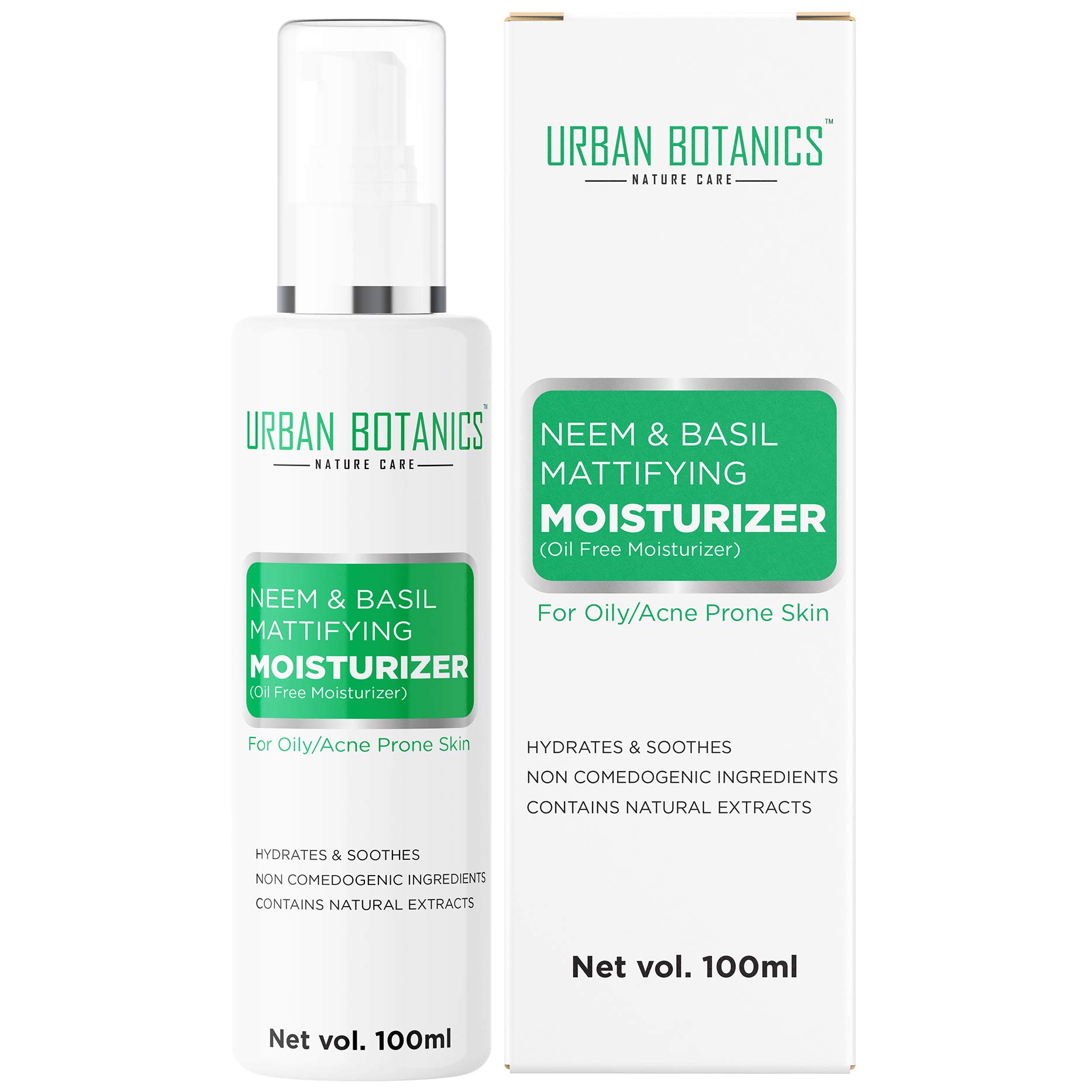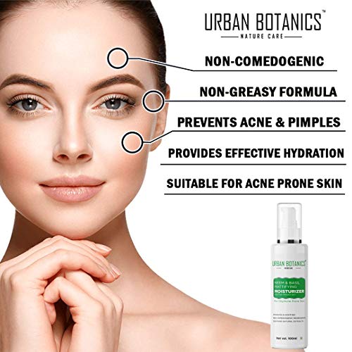 Urban botanic neem and basil mattifying moisturiserThis is genuinely one of the best moisturiser I have tried and to be honest I am never fully happy and satisfied with most of the moisturisers I have used . There are lot of things I have loved about this product .?? Urban botanics moisturizer is everything I ever wanted . It can work for all skin types but it does wonders for oily skin specially like mine . It hydrated the skin and still gives it a matiffying finish without making it greasy?? This moisturizer has Basil and Neem extracts ( quite and interesting combination) which helps in clearing acne and TAkes care of sensitive skin.??It also helps in keeping the skin clean clear and mainly helps in unclogging the pores of the skin?? It has a very light texture and gets absorbed very quickly into the skin without giving it more shine .?? The packaging is very premium and elegant . It comes with a press nozzle which makes it easy to use .?? The fragrance is very mild and subtle so it doesn’t bother us after applying .?? What I loved about this product is it keeps my face moisturized for 8-9 hours . ( ps - I even use it as a primer before applying makeup )?? oh Wait there is still something more I love about this product it’s 100 percent vegan *cruelty-free * Parabens-free * phthalate-free .So guys do try this product cos it’s a must try product specially for summers and for oily skin / combination skin people