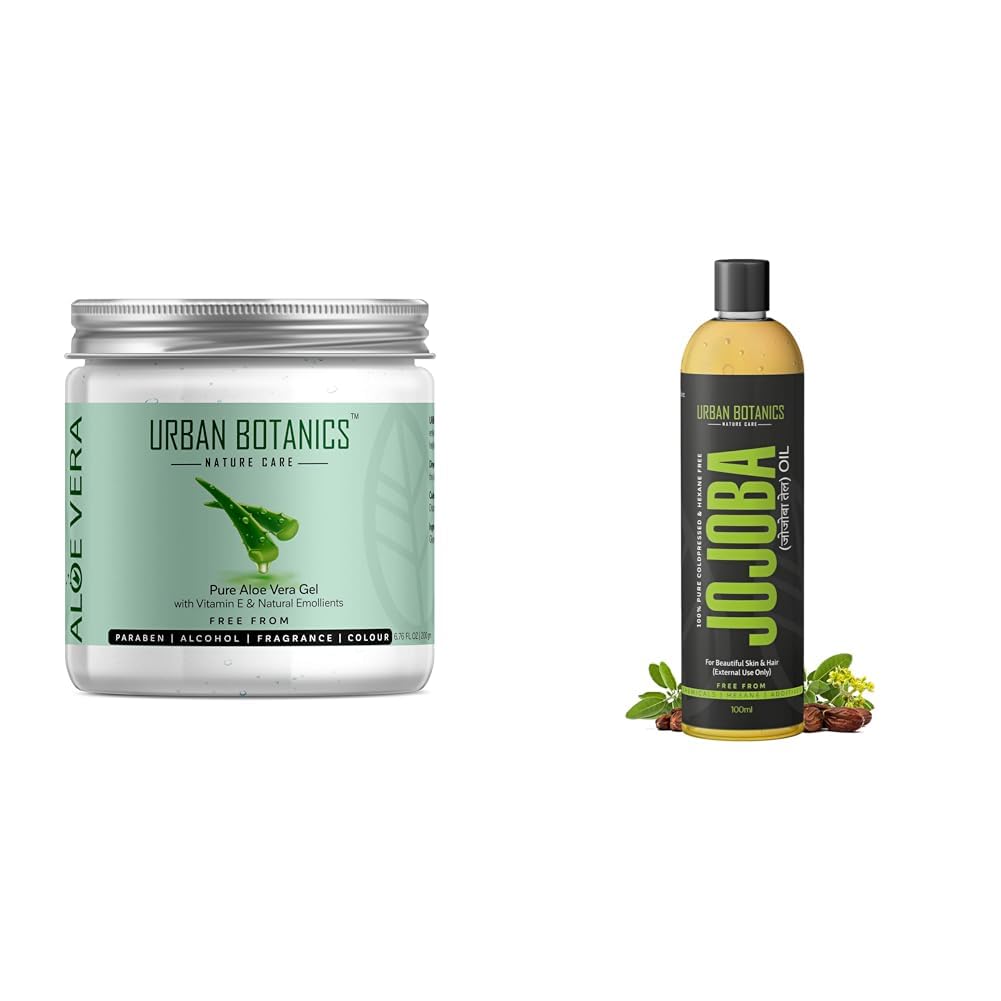 UrbanBotanics Pure Aloe Vera Skin/Hair Gel With Vitamin E & Natural Emollients (Paraben Free) 200g UrbanBotanics Cold Pressed Jojoba Oil for Skin & Hair - Virgin & Unrefined - 100ml