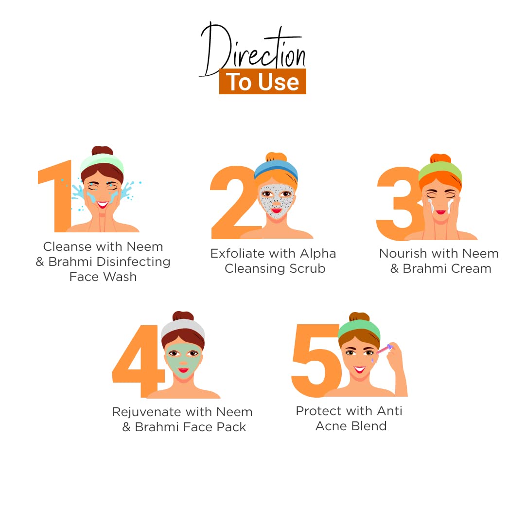 • Enriched with the goodness of Neem Brahmi Green tea lavender & Tea tree maintain healthy circulation energize skin cellsHelp to make even skin tone and free from dark spots and marks.