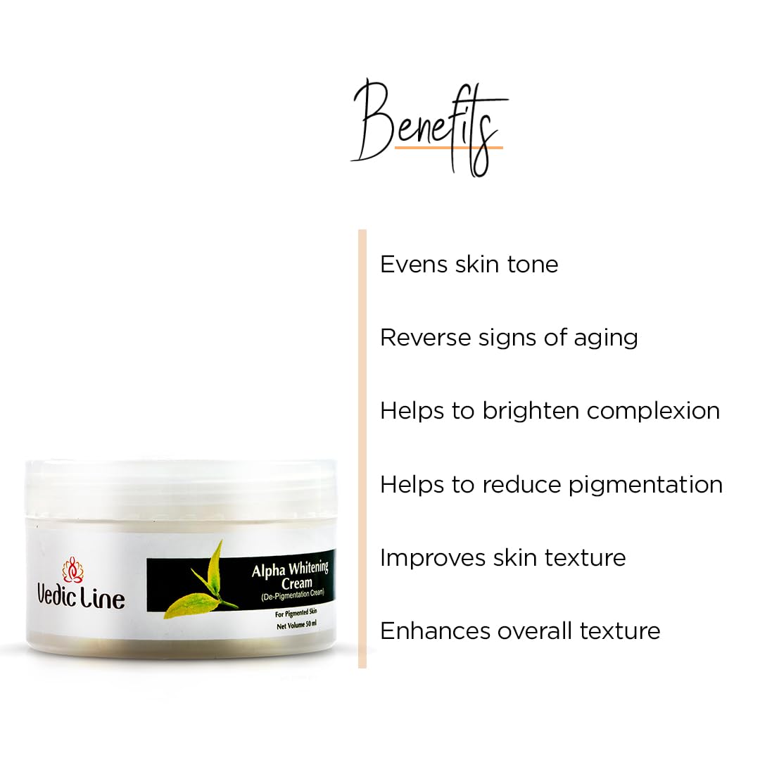 Vedicline Alpha Whitening Cream Helps to Reduce Pigmentation Acne Wrinkle with Green Tea & Olive Oil Gives instant glow and lightens skin complexion 50ml