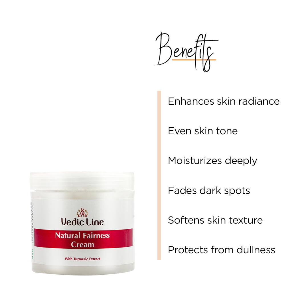 • Vedicline Natural Fairness Cream s pigmentation and activates skin cells and Contains age-controlling cellular components that nourish the skin and protect it from moisture .