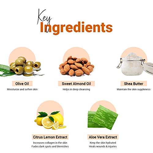 • Enriched with the Goodness of Citrus lemon extract Aloe Vera Sweet almond oil Olive oil Shea butter and many other useful ingredients give your skin a burst of energy.