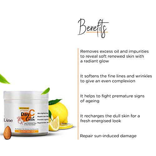 Vedicline Vitamin C Day Cream Stops Signs Of Aging Repair Dull & Damaged Skin With Citrus Lemon Extract Aloe Vera Sweet Almond Oil For Bright Skin 50ml
