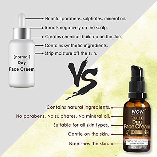 WOW Skin Science Day Face Cream - SPF 20 - with Rosehip Oil & Shea Butter - OIL FREE - Quick Absorbing - Protect & Soften Skin - No Parabens, Mineral Oil & Color - 50mL