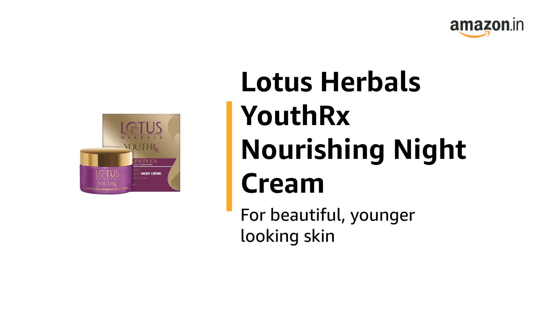 A natural anti-aging night Cream that reveals younger looking skin every morning Lotus Herbals Youth Rx Anti-aging Night Cream is a nourishing night Cream that hydrates skin tired from the wear and tear of the day while reducing fine lines and wrinkles. This light easy to absorb formula is created using the revolutionary âGreen Sciences' technology which makes use of the âGineplex Youth Compound' created using potent natural derivatives. The effects of this ground-breaking anti-wrinkle night cream are visible right from day 1. Gineplex Youth Compound Gineplex Youth Compund created using the revolutionary âGreen Science' technology. It consists of the potent extracts of: GinsengGinseng is a natural ingredient which increases the regeneration capacity of skin cells making your skin feeling younger more supple and radiant Zingiber Officinale (Ginger) Ginger extracts work naturally on your skin to reduce hypopigmented scars and reduce dark spots and blemishes leaving you with even toned skin that glows. Milk PeptidesMilk peptides nourish your skin from within and aid in the production of collagen which boost skin elasticity and infuse it with natural youth and vitality. Benefits of Lotus Herbals Youth Rx Anti-aging Night Cream Some of the most obvious benefits of this easy to use anti-aging night Cream are: Younger looking skin right from the first applicationThis light easy-to-absorb anti-wrinkle night Cream seeps into skin and reduces the size of the pores reduces fine lines and wrinkles and improves skin elasticity to reveal younger looking skin from day1. Reduces dark spots and blemishesThis natural anti-aging night Cream evens out your skin tone by reducing dark spots blemishes and hypopigmented scars leaving you with healthy-looking glowing skin every morning. Hydrates and nourishes skinThis enriching anti-aging night Cream has hydrating properties which reduces the appearance of dry patches and leaves your skin feeling soft supple and pampered. Safe for sensitive skin.Formulated For: WomenCreated using the ground breaking âGreen Science' Technology the Gineplex Youth Compound used in the unique formulation of this anti-wrinkle anti-aging Cream is derived from potent natural ingredients making this product safe even for sensitive skin.