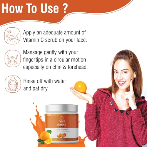 • BRIGHTENS SKIN : Vitamin C helps reduce free radical damage and other environmental damage. Vitamin C scrub helps to give you a glowing and even complexion.