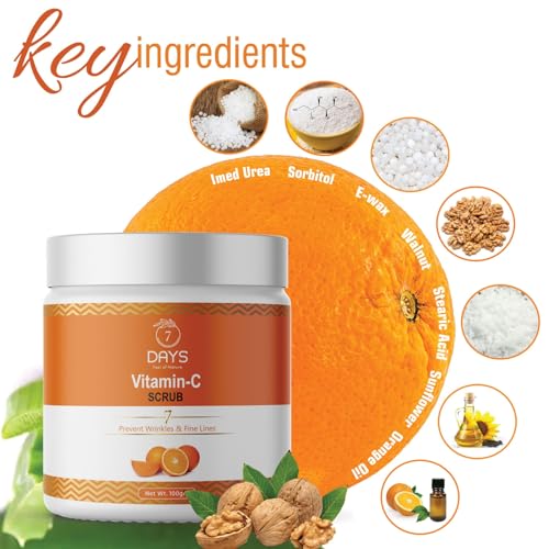 7 DAYS Vitamin C Face and Body Scrub | Whole Skin Cleanser for Deep Exfoliation | Dead Skin and Tan Remover | Blackhead Remover 100g