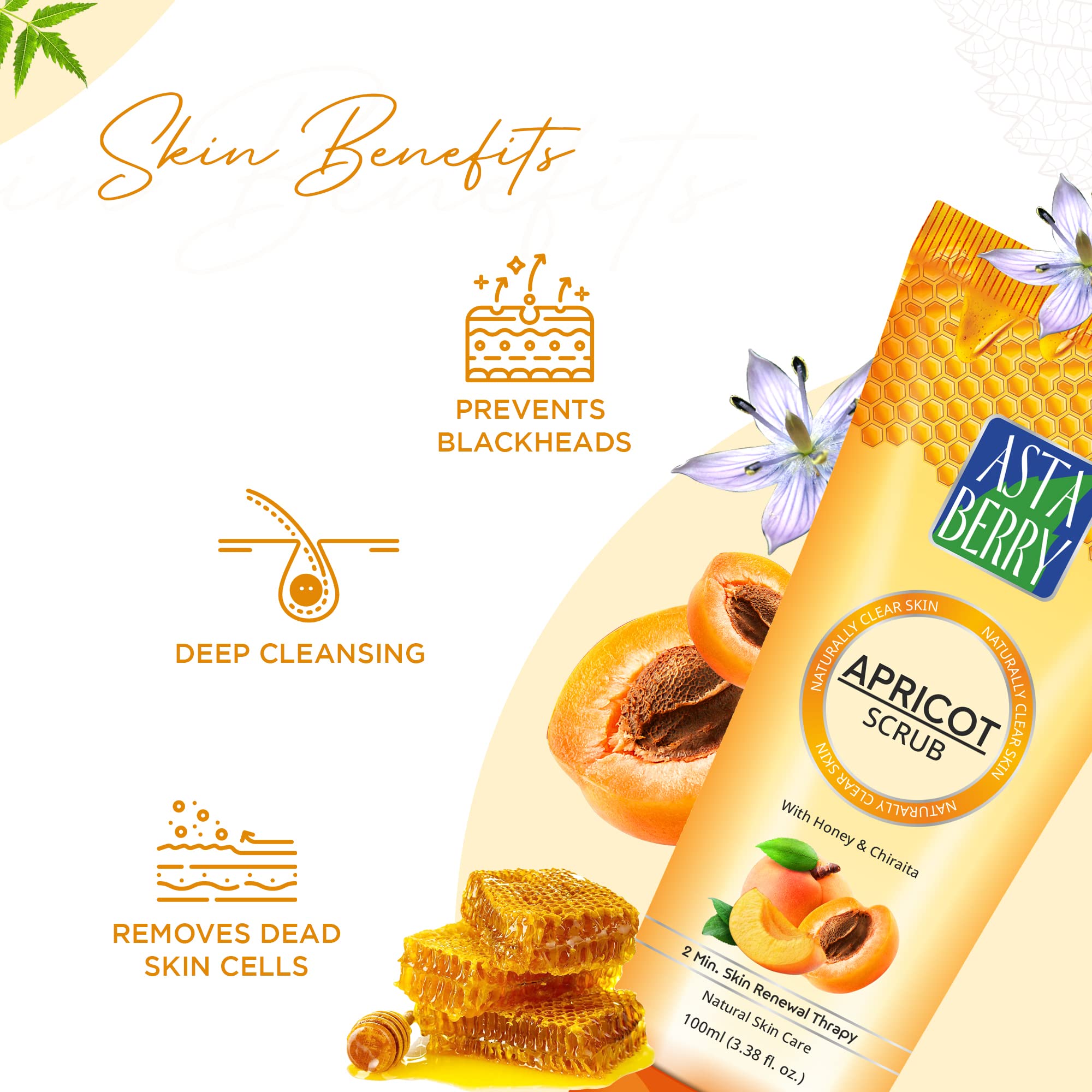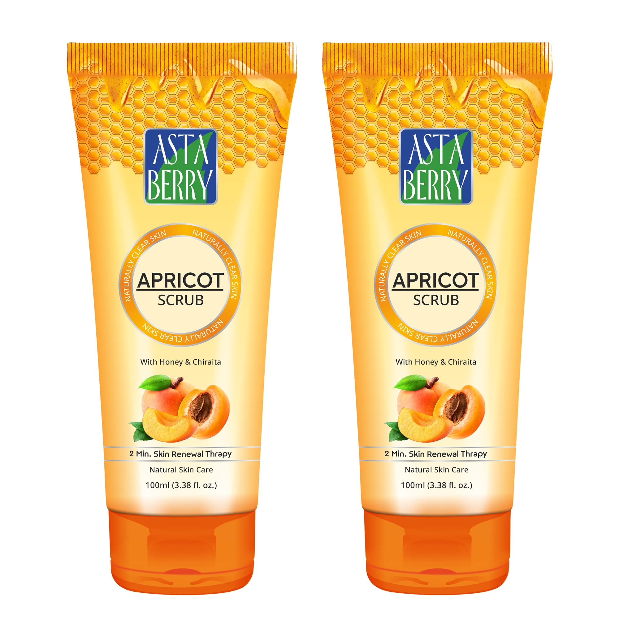 Astaberry Apricot Scrub With Honey & chiraita | Dermatologist Formulated | All Skin Types | 2 minute Skin renewal therapy | Naturally Soft & Glowing Skin | Remove Dead Epithelial Cells | 100 ml (Pack of 2)