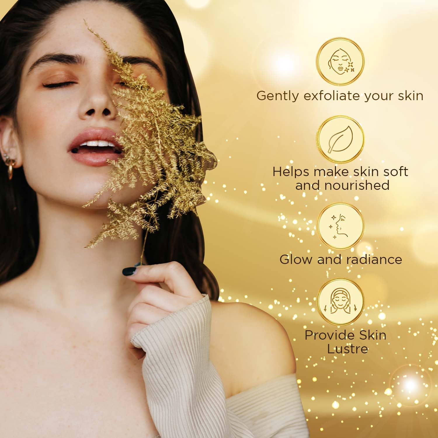 • Benefits : Conditioning of the skin Soft skin Glowing skin Hydrated skin
