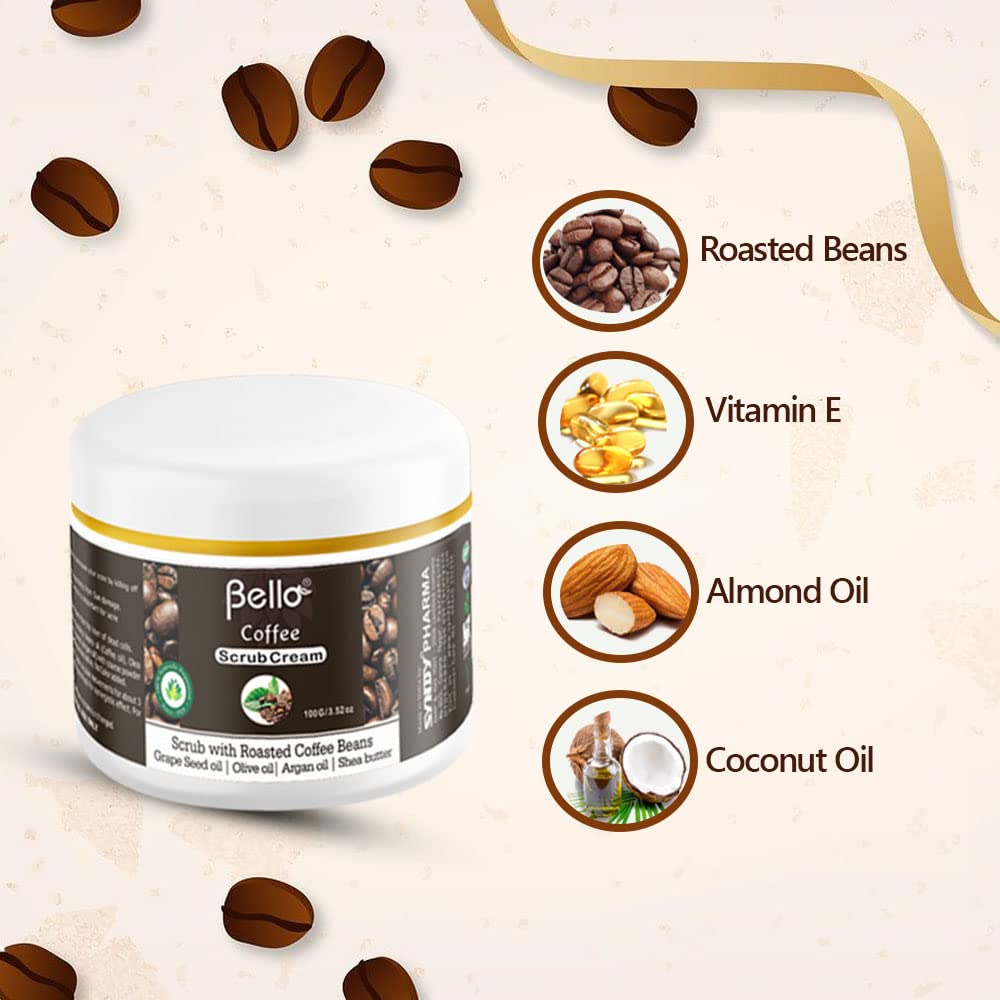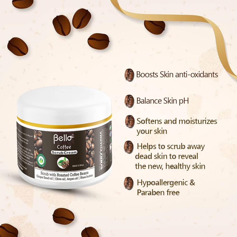 Bello Coffee Scrub Cream| 100gms | With Coffee Beans | Herbal