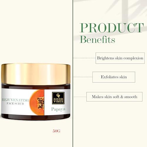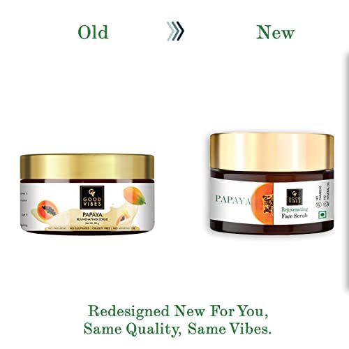 Good Vibes Papaya Rejuvenating Face Scrub, 50 g | Cleansing, Nourishing, Moisturizing For All Skin Types | Skin Exfoliation & Tan Removal | No Parabens, Sulphates, Mineral Oil