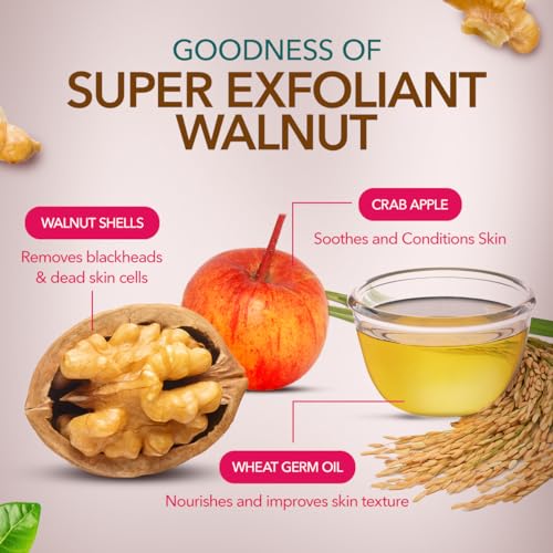 Gentle Exfoliating Walnut Scrub: Gently scrub skin impurities. What it does: Himalaya's Gentle Exfoliating Walnut Scrub exfoliates dead skin cells to remove impurities that routine cleansing cannot tackle. It contains Crab Apple a soothing antiseptic and keratolytic agent that helps loosen dead skin fragments. Walnut shell granules scrub away dirt blackheads and dead cells and Wheatgerm oil is a rich source of natural vitamin E. These natural ingredients cleanse nourish and moisturize your skin to make it soft fresh and radiant. Key ingredients: Crab Apple has antiseptic cooling soothing nutritive and keratolytic properties. It reduces skin inflammation and helps remove dead skin fragments. Wheat seeds are cooling and contain oil. The high concentration of vitamins D and E in wheat along with proteins and natural antioxidants make it an ideal ingredient for our face scrub. Wheat can also be used for most skin types as it nourishes the skin and boosts the skin's elasticity. Walnut Shell acts as exfoliating micro-particles and contains organic acids that are astringent and antiseptic.