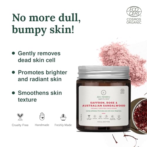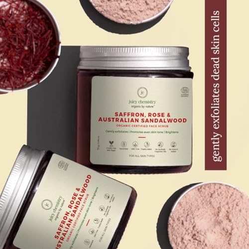 Juicy Chemistry Saffron, Rose & Sandalwood Face Scrub, 75 G | Organic Powder Face Scrub For Gentle Exfoliation & Skin Brightening | Ecocert Certified Organic For Unisex | Cruelty-Free & 100% Vegan