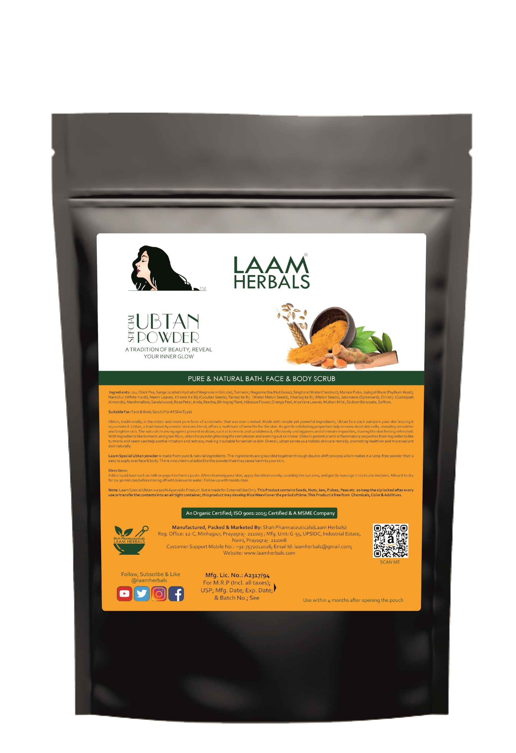 • The Special ingredients in the Special Ubtan for face and body scrub is inspired from the traditional grandmother's ubtan recipe to give you skin that glows with best skin health.