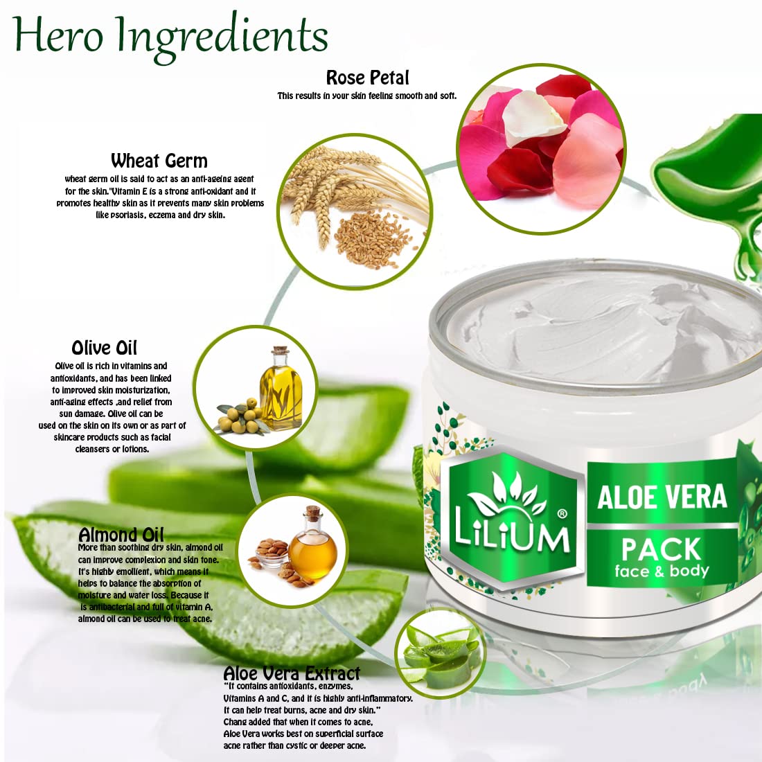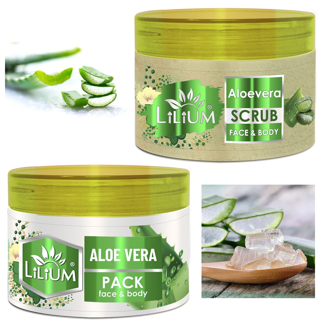 Lilium Aloe Vera Scrub & Pack 250g Each | Enriched With Jojoba Oil & Almond Oil Active vitamins B3 C E | Remove OilDirtBlackheads And Give Instant Radiance Pack Of 2
